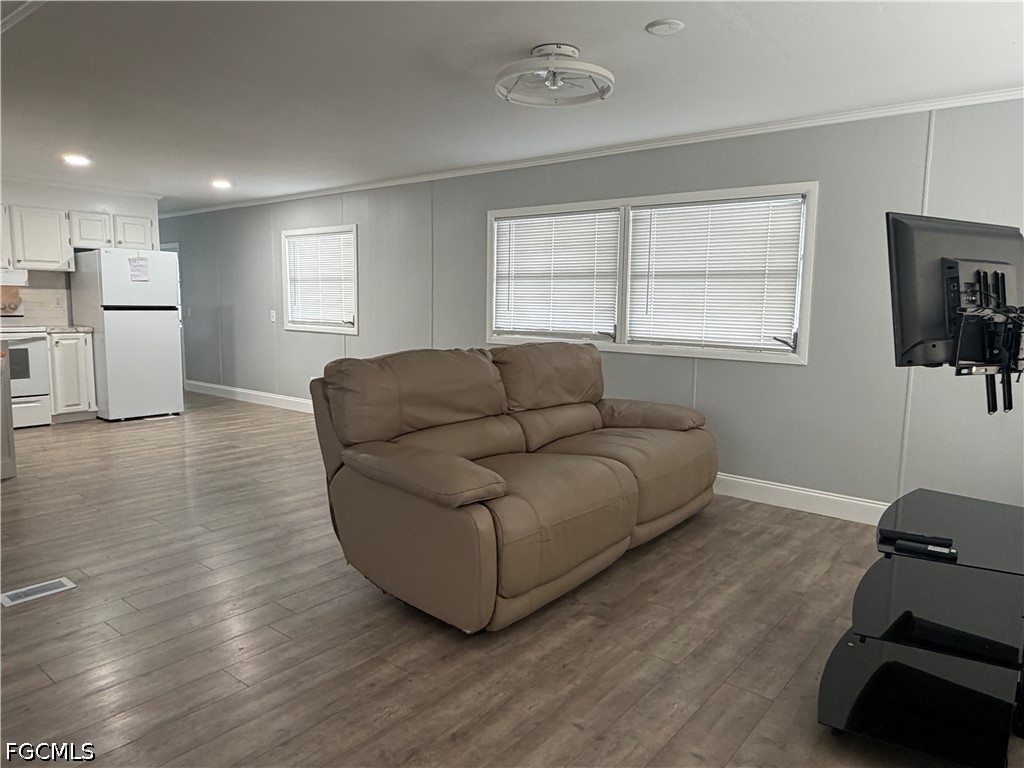 This 2-BR/2 BA + den home has been renovated and ready for new buyer. Great room concept with split floor plan consists of Living Room, Dining Area and Kitchen. Primary bedroom with walk-in closet and bathroom with shower. Second bedroom has 2 closets with back door access. Den area can be used for office and or hobby area. LTV flooring throughout the home 2024. LG Refrigerator 2025. Roof 2023. Water Heater 2026. Utility shed for washer, dryer and storage. Located in Carriage Village, active 55+ pet friendly community. OWN YOUR LAND. Maintenance Fee is $95/month. Community has an abundance of amenities to include large-heated pool, clubhouse, hobby shop, library, billiards room, putting green, shuffleboard and bocce ball. Great place to live year-round or use as a winter escape from the cold weather.